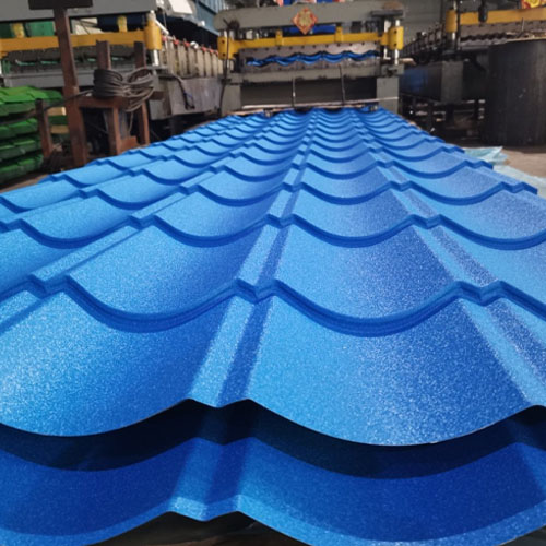 - Various kinds of press molding equipment can produce different types of blue corrugated metal roofing sheets.